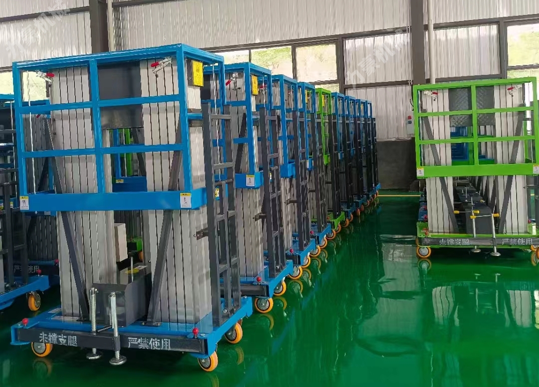 双立柱铝合金升降平台:全新设计的新一代产品,整体采用高强度铝型材精制而成由于型材强度高,使升降台的偏转与摆动极小。采用双桅柱式结构,载重量大,平台面积大,稳定性极好,运转灵活,推行方便。它轻盈的外观,能在极小的空间内发挥最高的举升能力。该升降机广泛用于厂房、宾馆、大厦、商场、车站、机场、体育场等。可用作电力线路、照明电器、高架管道等安装维护,高空清洁等单人工作的高空作业。